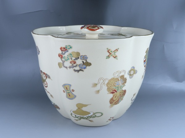 表千家ではこの花入を桐の丸卓の地板に、天板に香炉を飾る。