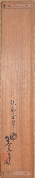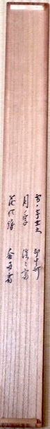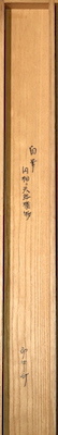 即中斎宗匠 「円相 天然」共箱 表装:春芳堂 如心斎宗匠の写し。 即中斎・淡々斎・愈好斎合筆雪月花 共箱 利休350年忌に三千家合作で 書かれた貴重な一幅 小田雪窓管長筆 利休辞世句全牛和尚筆 利休居士像即中斎宗匠箱 33cm × 187cm 小田雪窓・・・大徳寺第11代管長。大徳寺506世。室号は蔵暉。 昭和41年(1966)寂、65才。 全牛和尚・・・堺の南宗寺住職、絵をよくした。 久田尋牛斎宗匠一行「松樹千年翠」共箱 31cm × 179cm 大綱和尚賛「大かたの」永楽和全筆 白蔵主画永楽妙全極箱 30.5cm × 149cm ページトップへ 茶碗 掛物 茶器/茶入 水指/花入 棚/風炉先 香合/蓋置 釜/炭斗 茶杓 菓子器/懐石道具 建水 莨盆/火入 その他